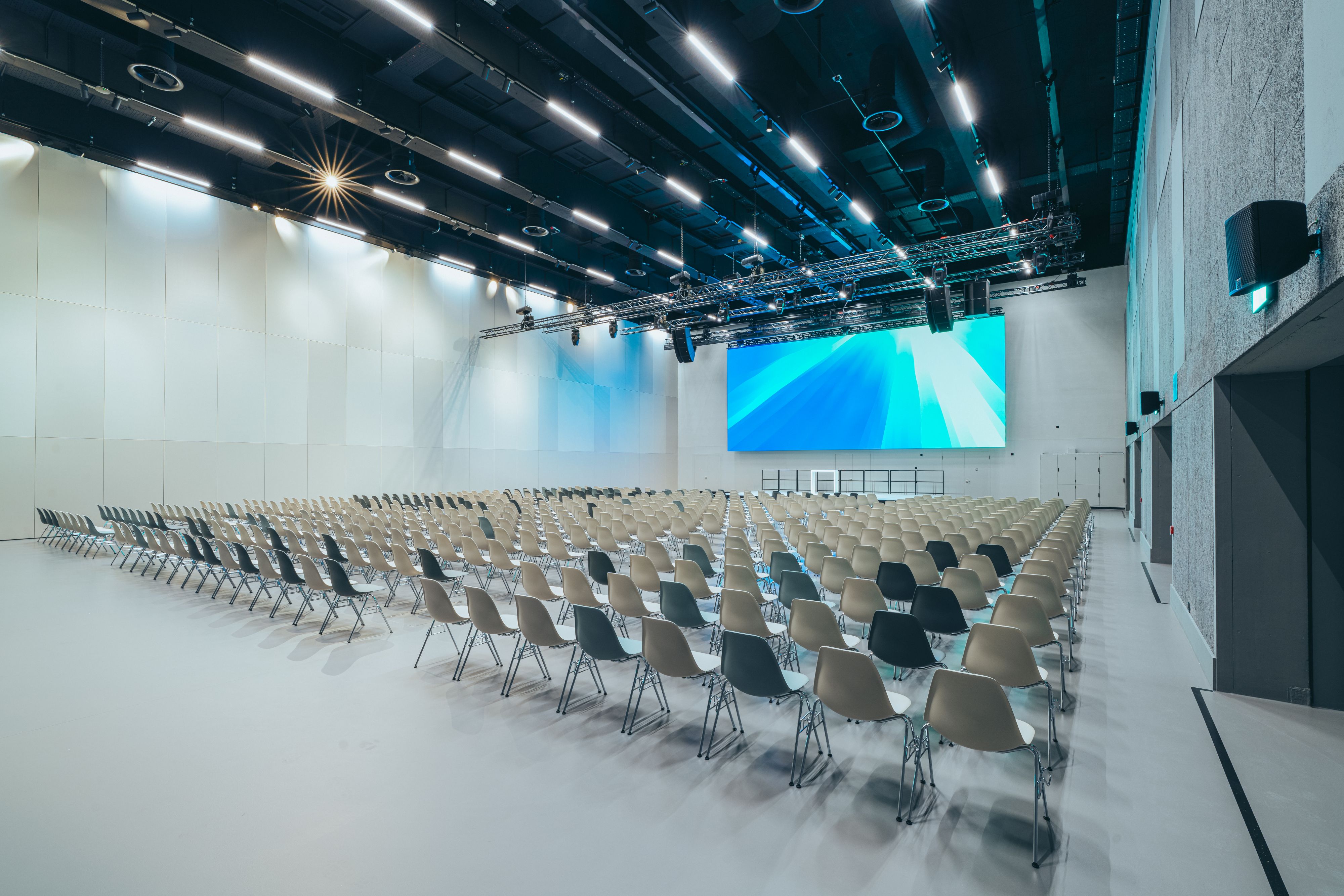 Le demi-CUBE offre 652 m² d'espace, une technologie de pointe, un mur LED divisible de 27 m et une scène – idéal pour les événements plus intimes avec l'impact d'un grand spectacle.
