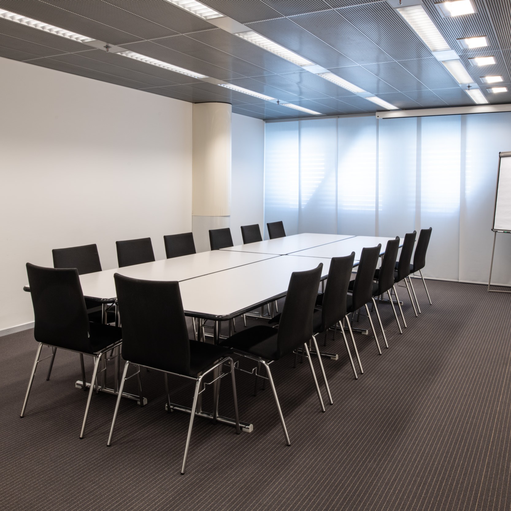 Un écran moderne de 85'', une connexion HDMI et un mobilier flexible font de la salle de congrès 6 la solution idéale pour les formats plus petits avec besoins techniques.
